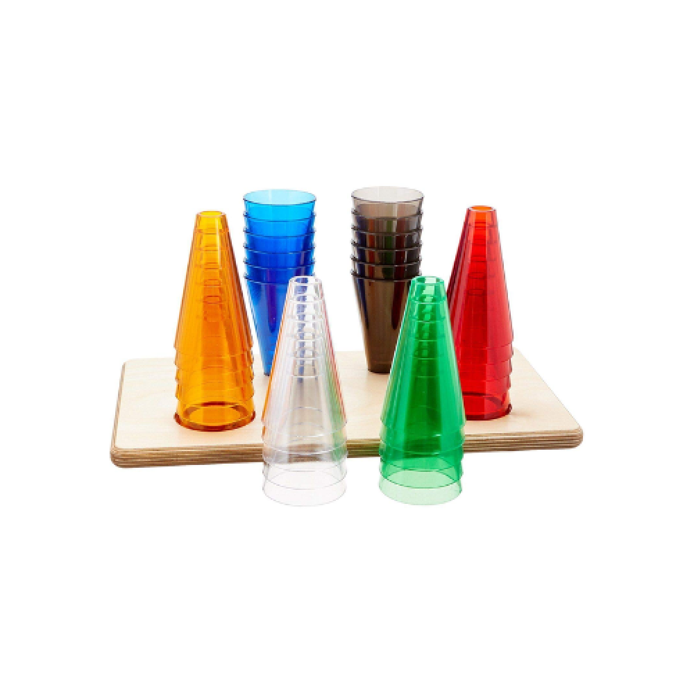 - تحسين التنسيق بين اليد والعين: تساعد هذه المخاريط المستخدمين على تطوير التنسيق بين اليد والعين من خلال ممارسة التقاط ووضع المخاريط الملونة فوق بعضها البعض. هذه المهارة ضرورية للعديد من الأنشطة اليومية مثل الكتابة، والرسم، وارتداء الملابس.