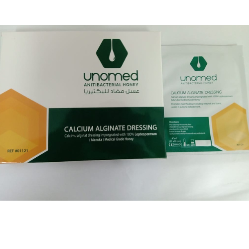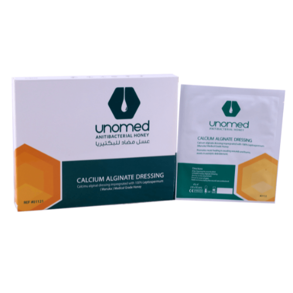 ألياف الكالسيوم الألجينات الموجودة في أونومد ضماد العسل للجروح والحروق تمتص السوائل الزائدة من الجرح، مما يساعد على منع العدوى وتعزيز التئام الجروح.