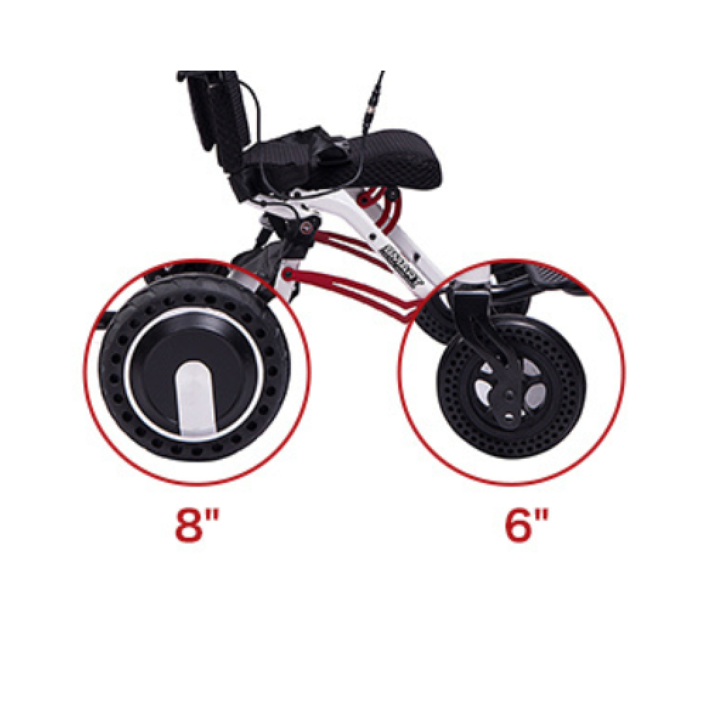 - هيكل الكرسي الكهربائي من الألومنيوم خفيف الوزن وعالي التحمل.