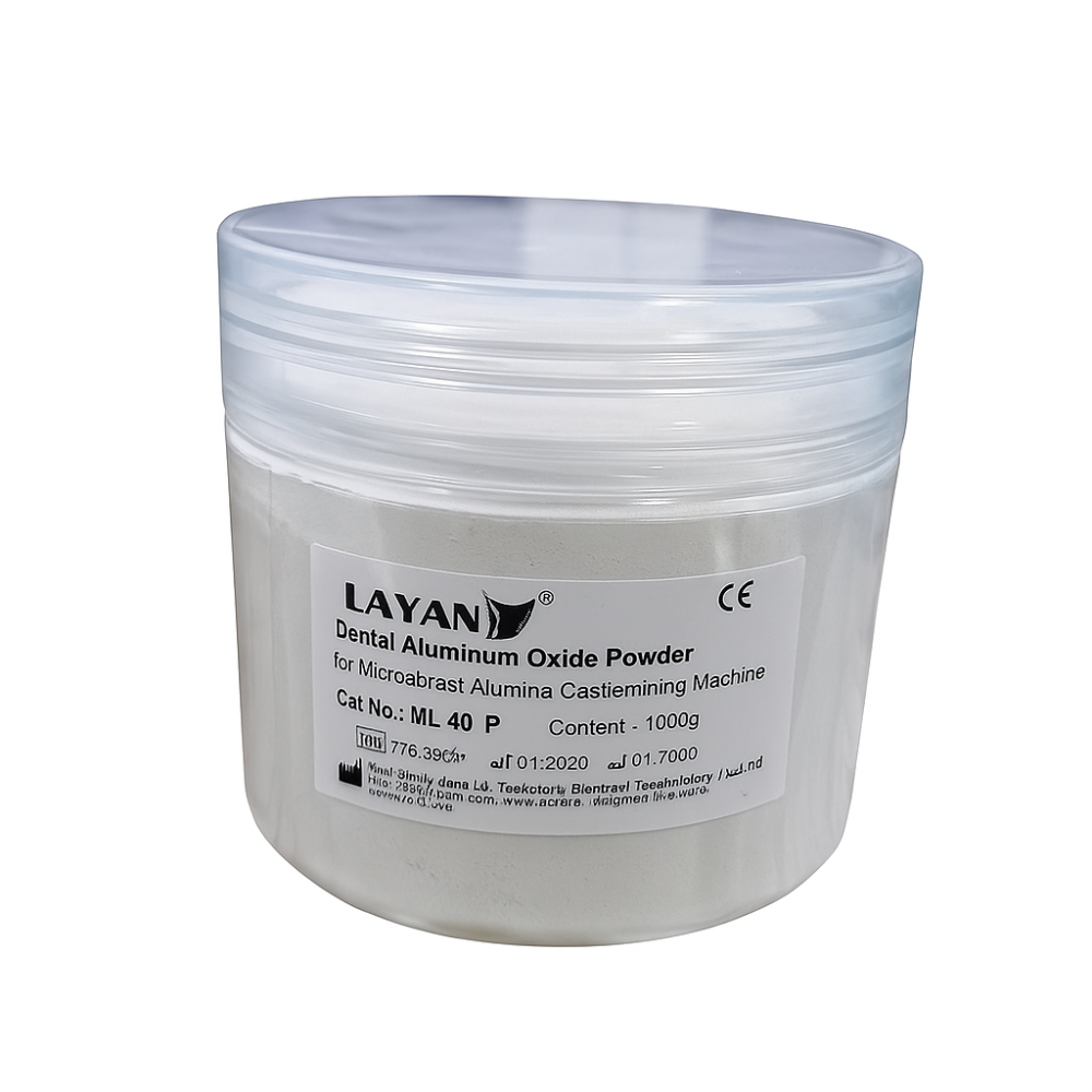 مسحوق أكسيد الألومنيوم عالي النقاء، يستخدم في إجراءات صنفرة الأسنان، التحضير السطحي، وتنظيف وتعزيز متانة الأسنان. مناسب للاستخدام الاحترافي في العيادات السنية.