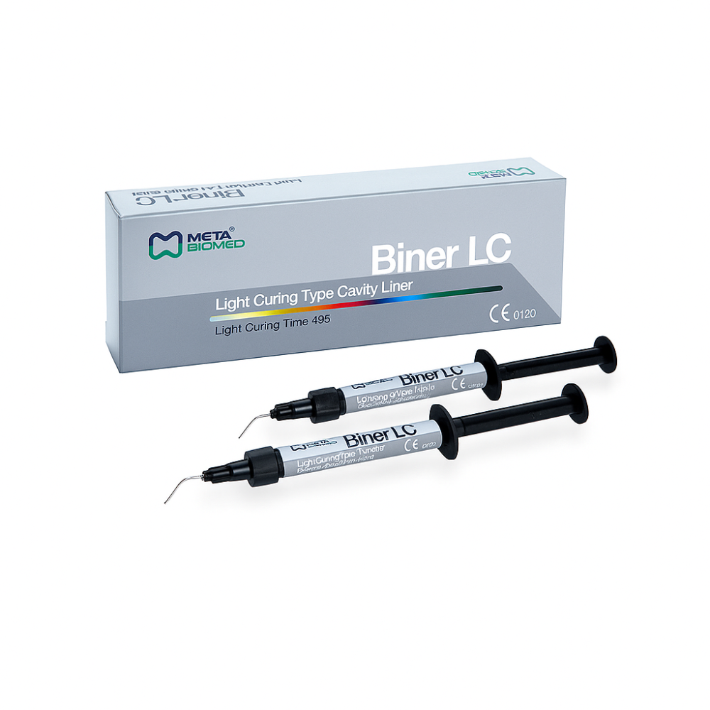 Dental BINER LC Light Curing Type Cavity Liner 2 x 2gm Syringe Pack by META:منتجنا Dental BINER LC Light Curing Type Cavity Liner من شركة META هو بطان...